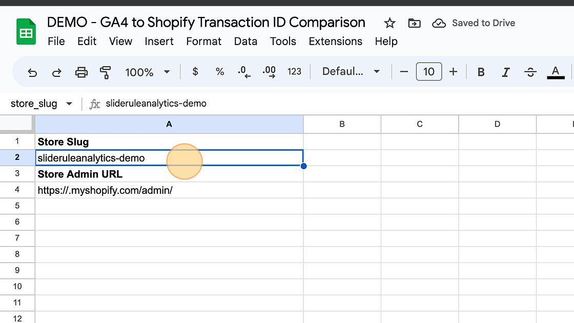 3. Paste your slug in the designated cell of the "Store Info" tab of the template.