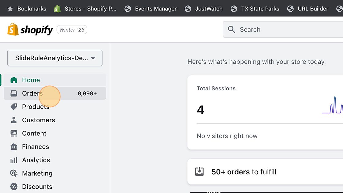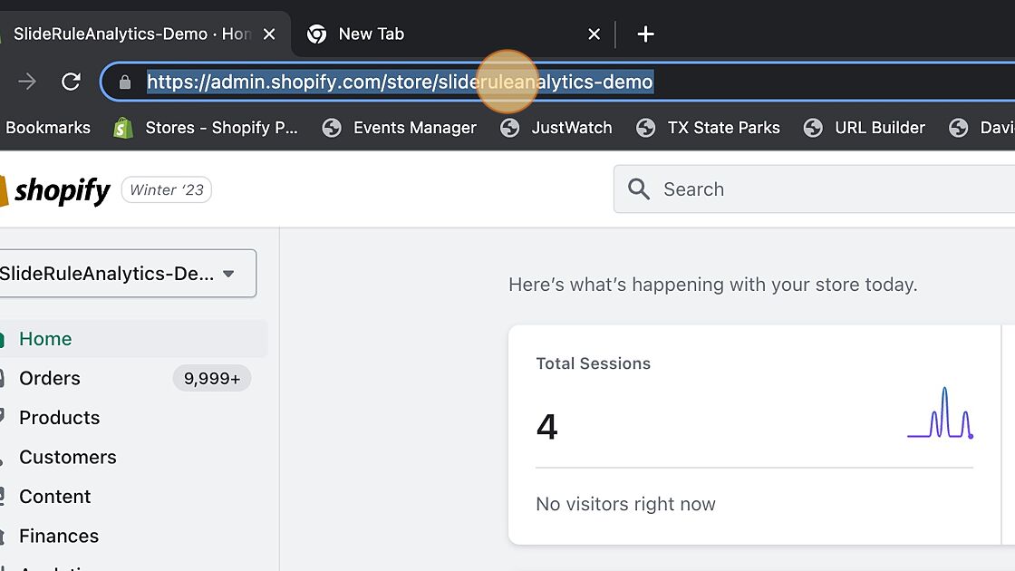 2. Copy your store slug from your store's admin url. It's either "admin.shopify.com/store/YOUR-STORE-SLUG" or "YOUR-STORE-SLUG.myshopify.com/admin"