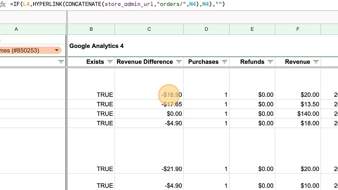 With this spreadsheet you can easily compare your Shopify orders to your GA4 purchases and uncover any discrepancies. By regularly monitoring and reconciling your data, you can ensure the accuracy of your metrics in GA4 and make data-driven decisions to optimize your online store's performance.