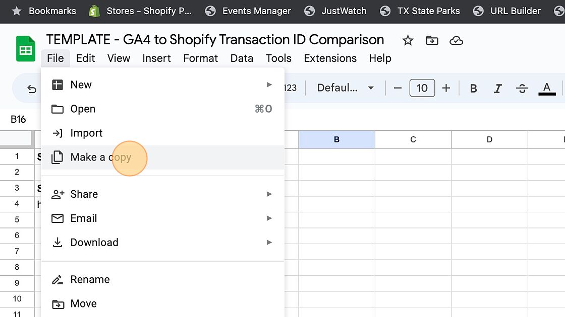 You’ll need permissions to export orders from Shopify and create explorations in GA4. The spreadsheet doesn’t require any app installations or special API calls.