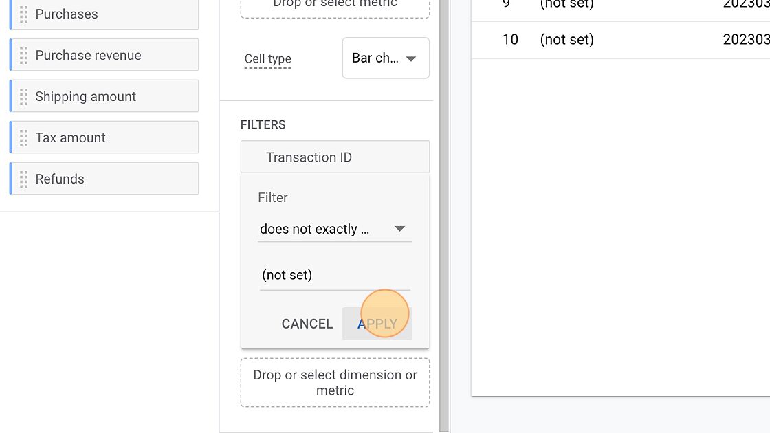 13. Create a filter for transaction IDs that do not match "not set" and click "Apply."