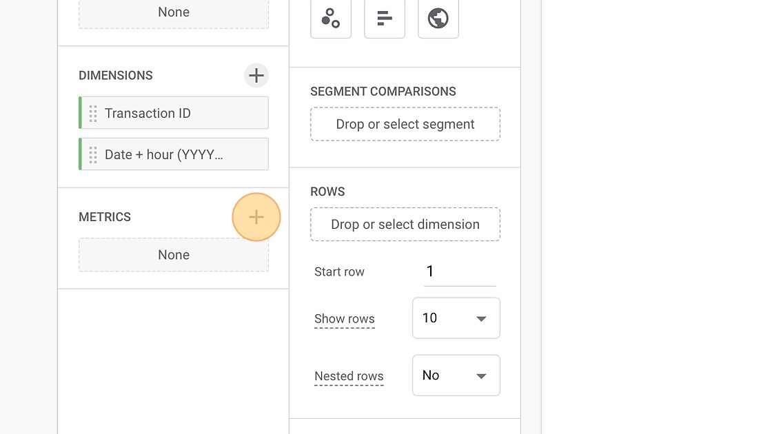 10. Import the "Transaction ID" and "Date + hour" dimensions into the palette