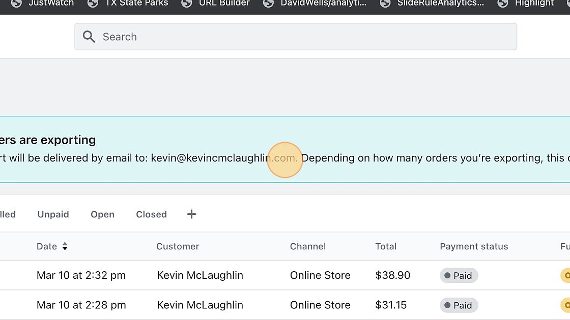 6. Wait for your orders to export and then download the CSV file from the email that Shopify sends to the designated email address