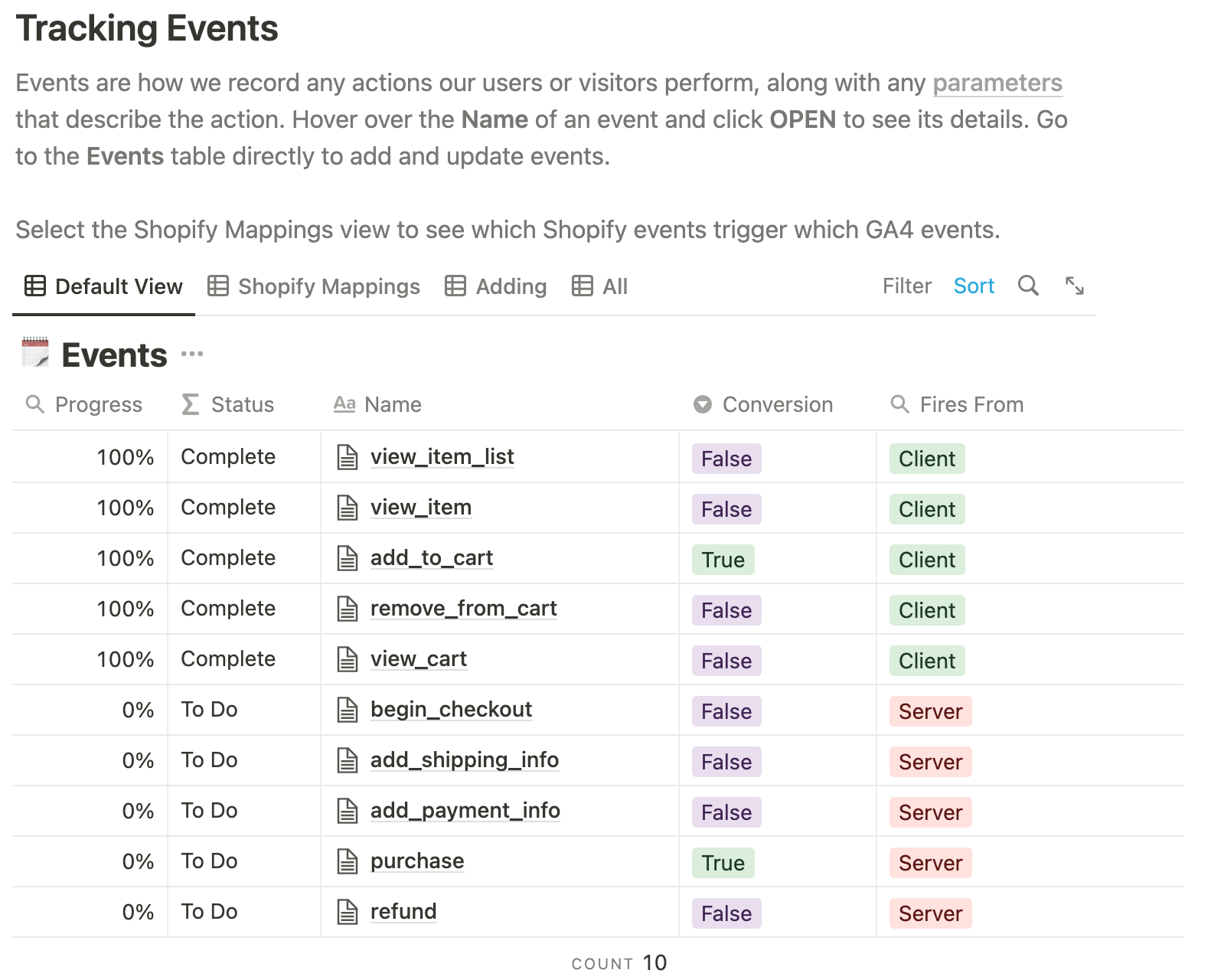 You can see all available events in the Notion Google Analytics 4 template here.