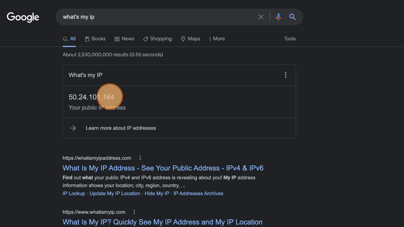 Use Google to find your IP address.