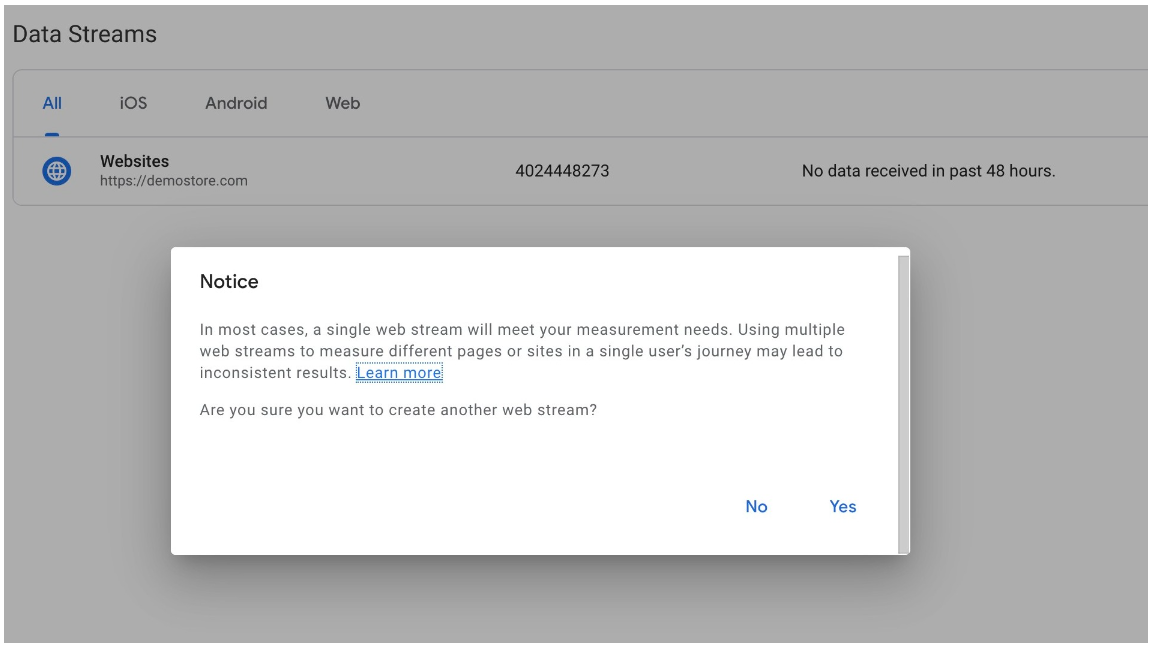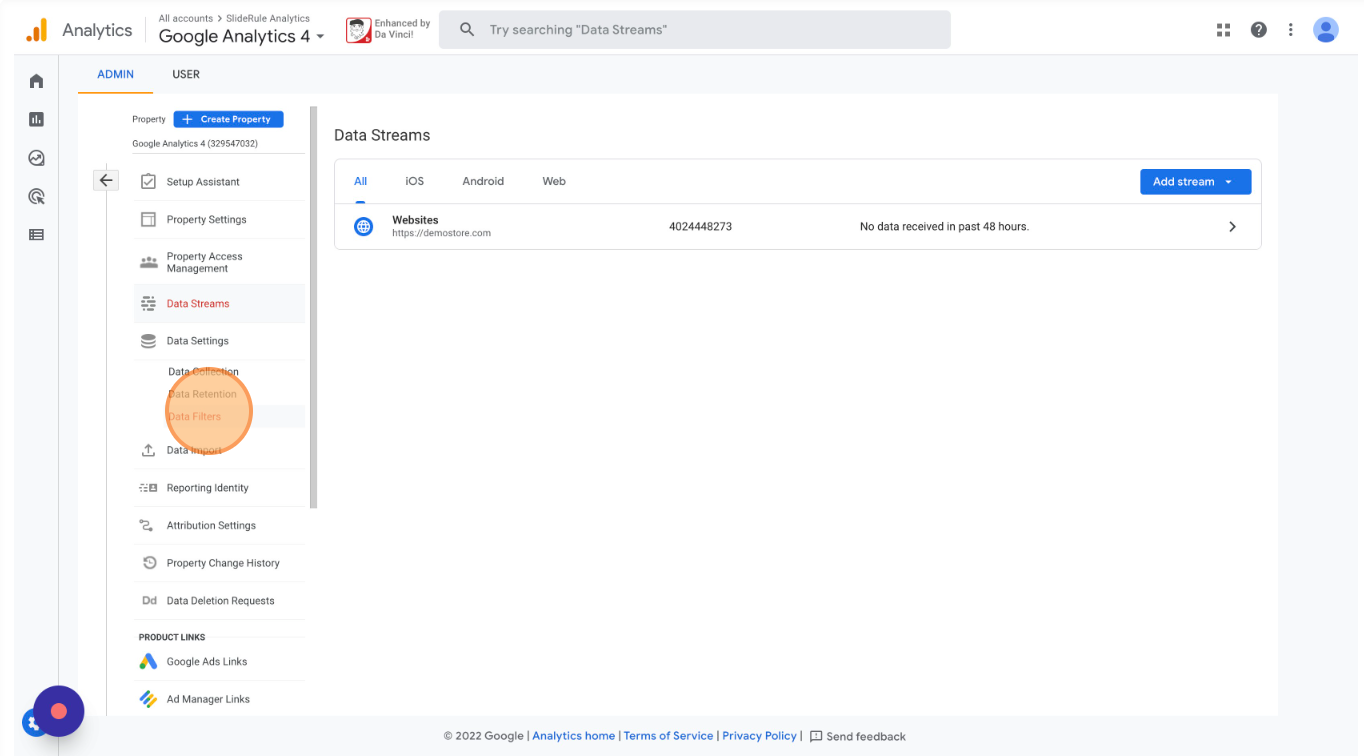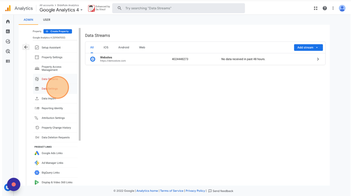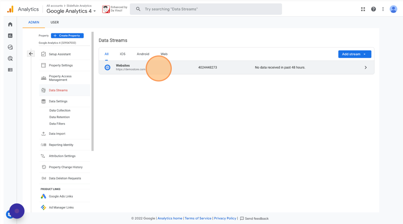 Back under Google Analytics 4’s settings, open your Data Streams.