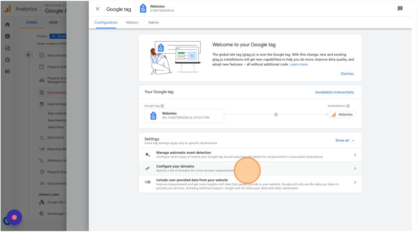 To set it up, open your “Websites” Data Stream and click "Configure tag settings".