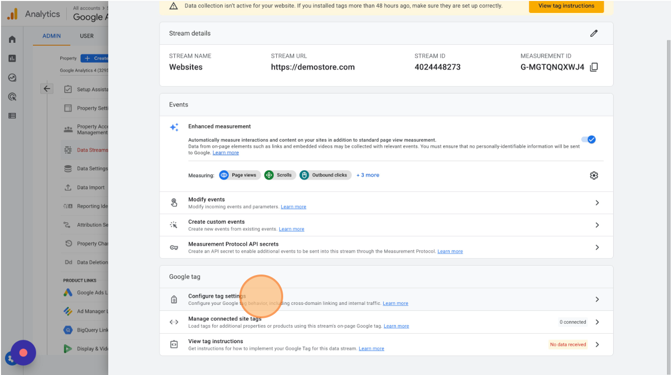 Return to your Websites Data Stream settings.