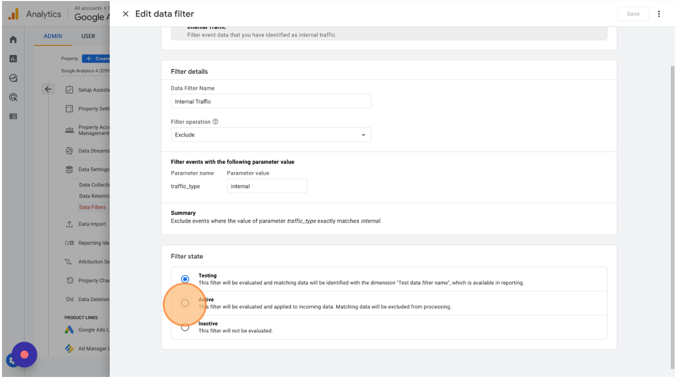 And switch the internal filter from "Testing" to "Active" and save.