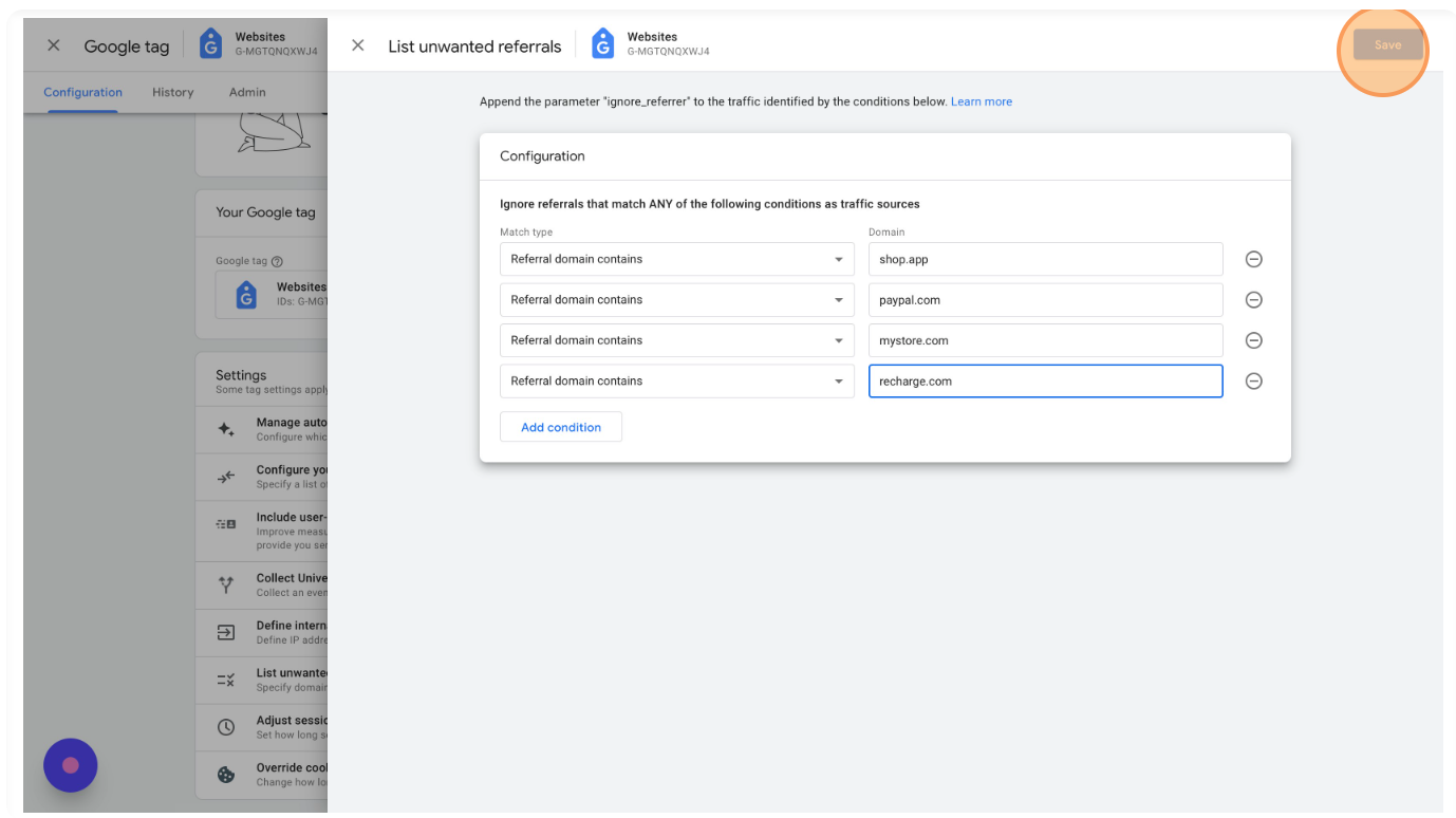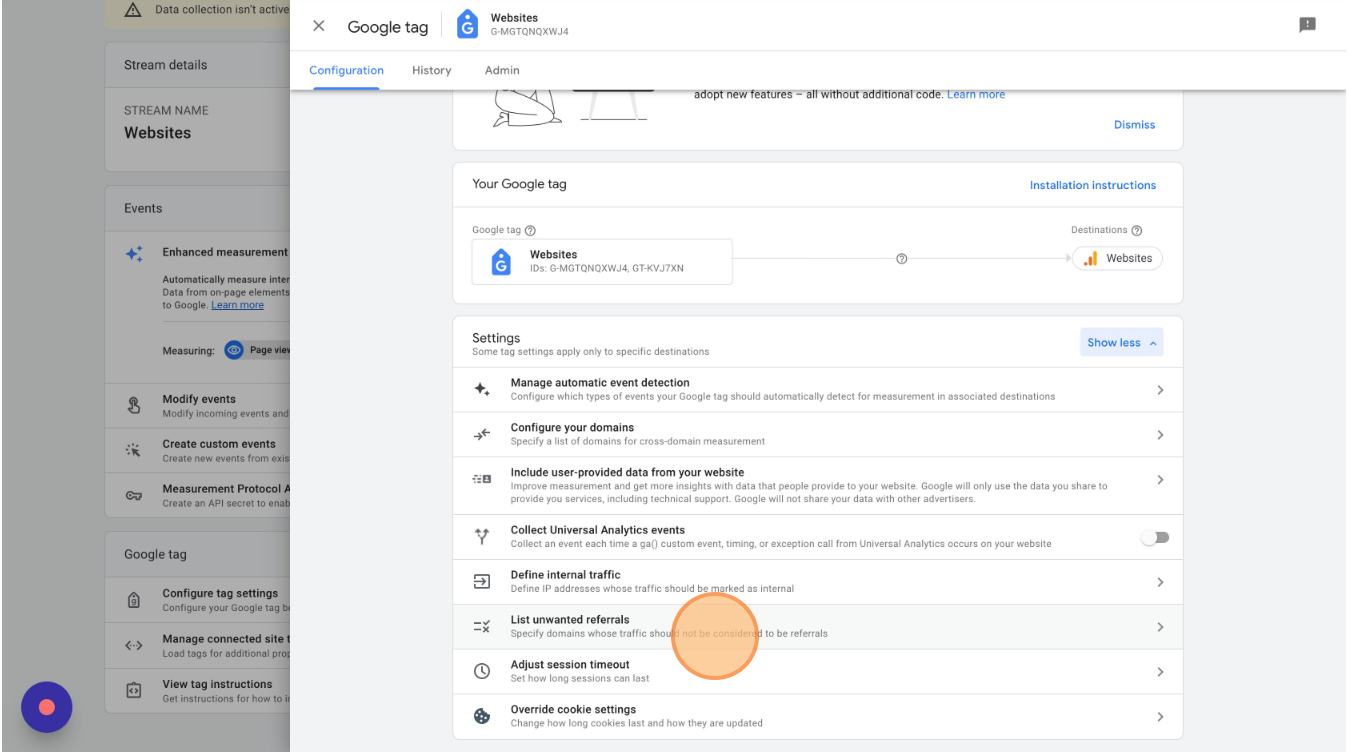 Return to your Websites Data Stream settings and select "List unwanted referrals"