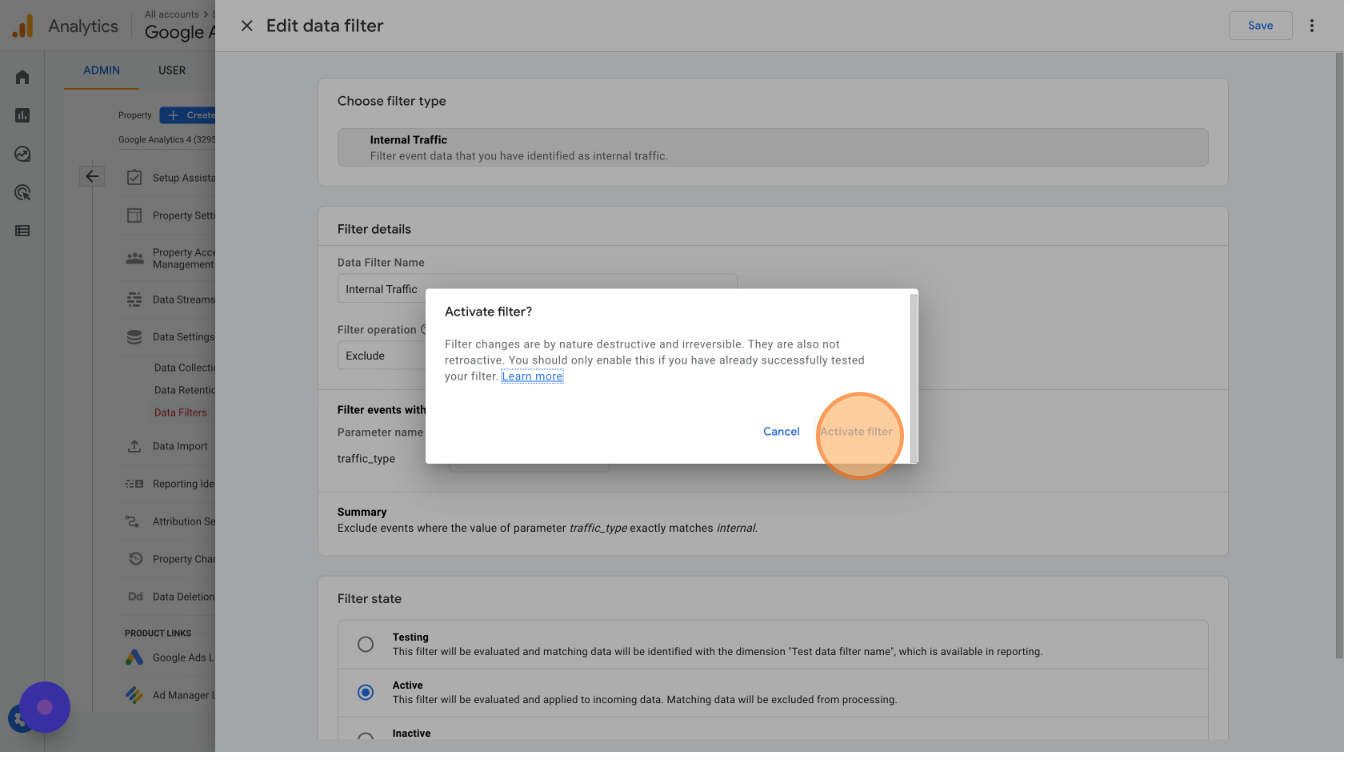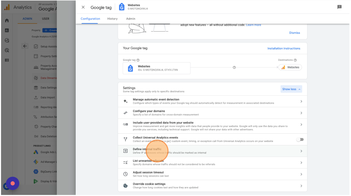 Unlike Universal Analytics, you have only defined what is internal data with IP addresses above. You still have to filter out internal data from Google Analytics. To do so, complete the steps below.