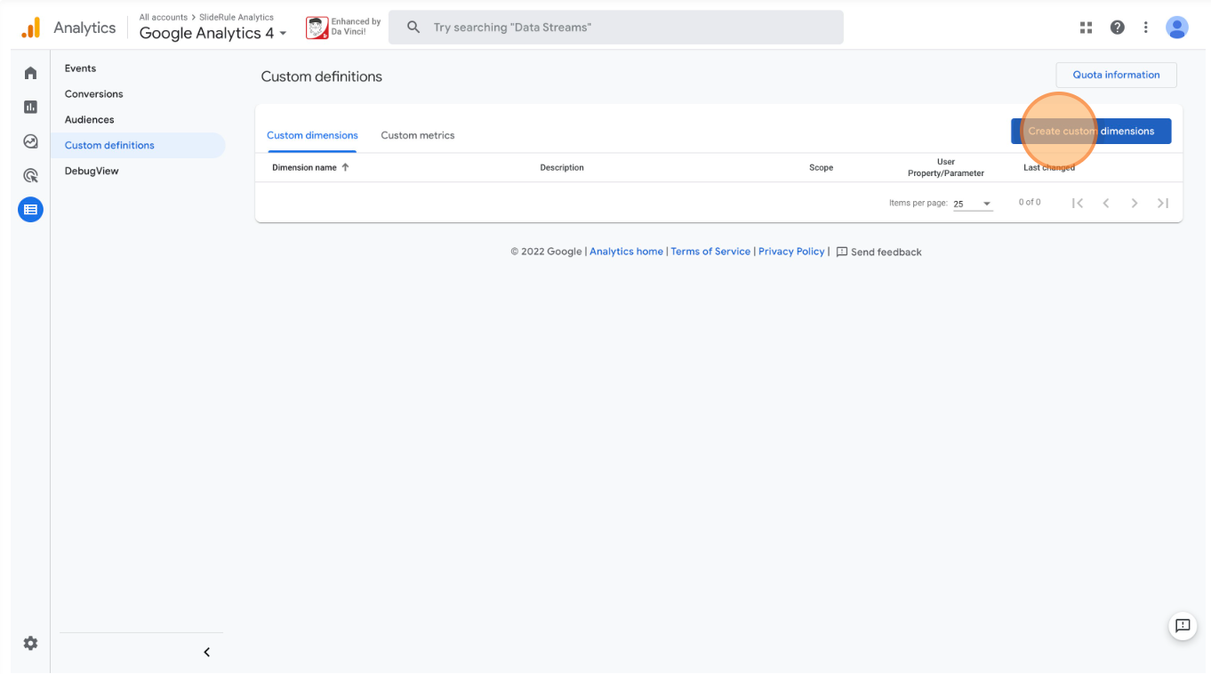 Click "Create custom dimensions"
