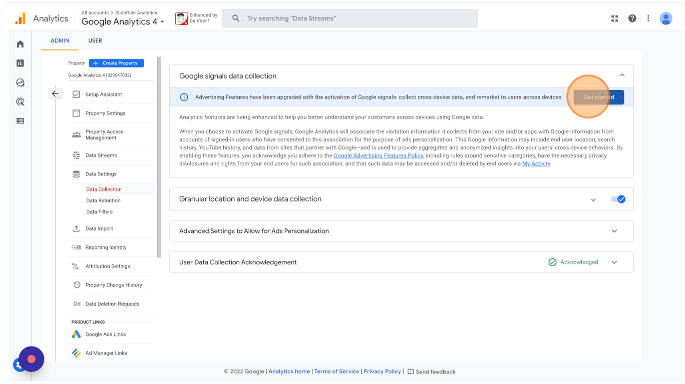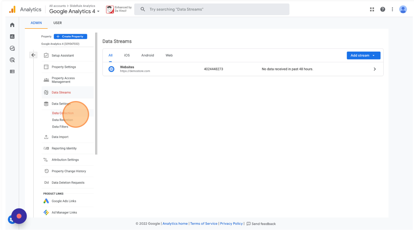In your GA4 property's settings, select "Data Collection"
