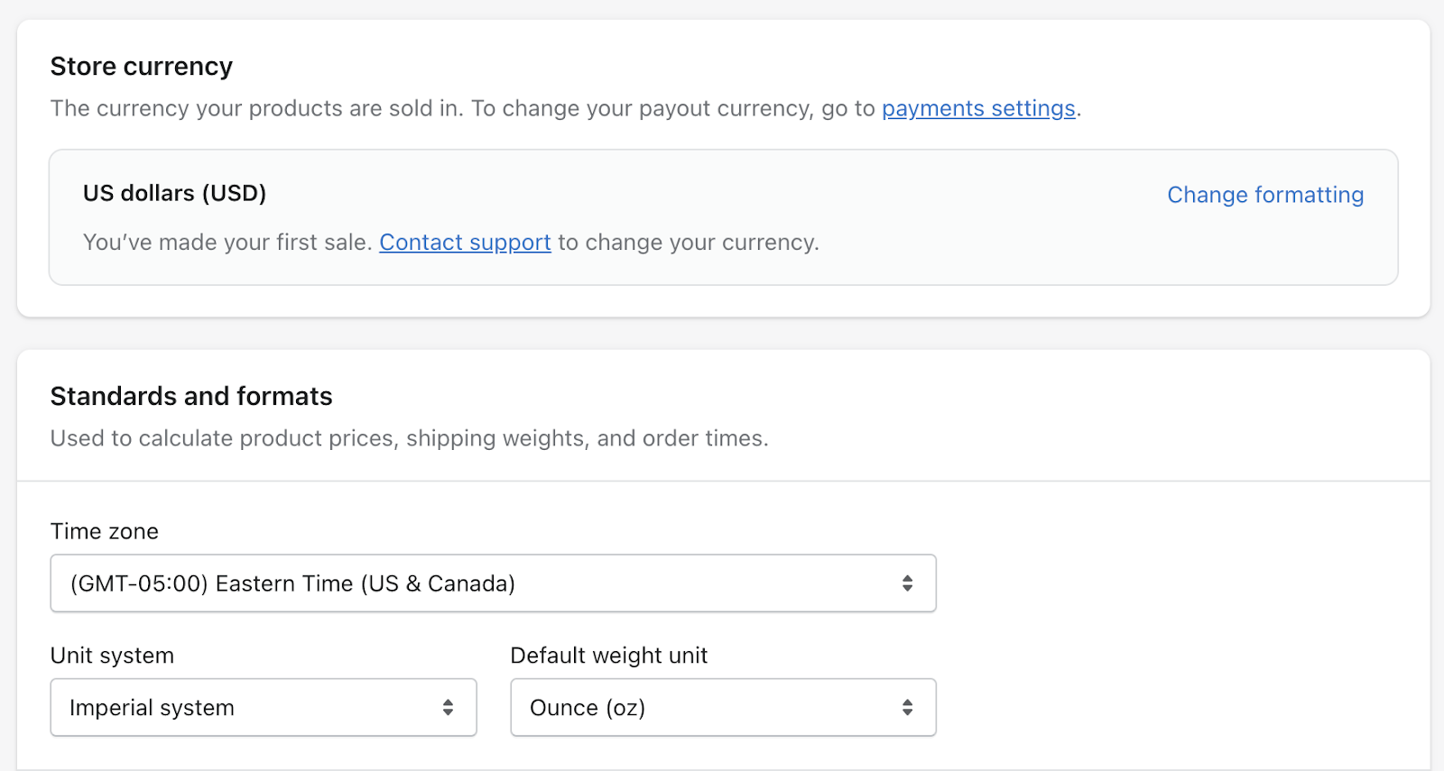 Make sure these match your Shopify settings (under Shopify > Settings > Store Details).